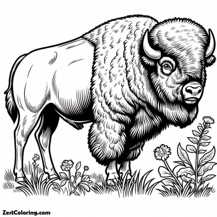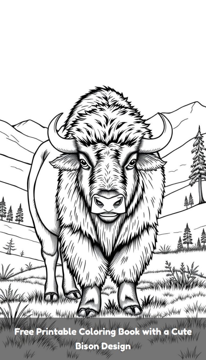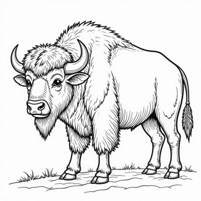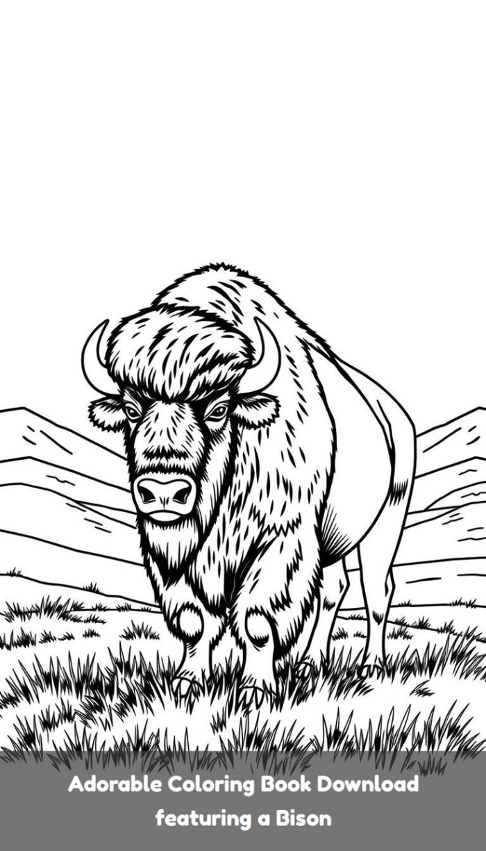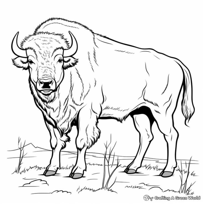 A fun and engaging bison coloring page featuring a majestic bison standing proudly in a natural setting, perfect for creative coloring.