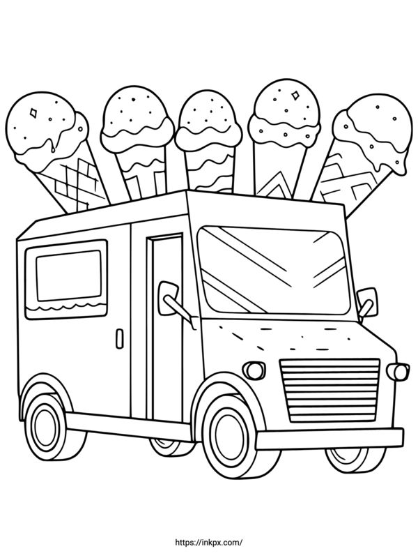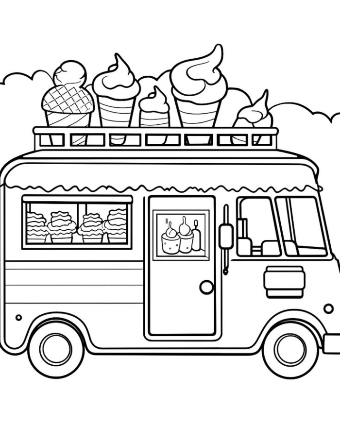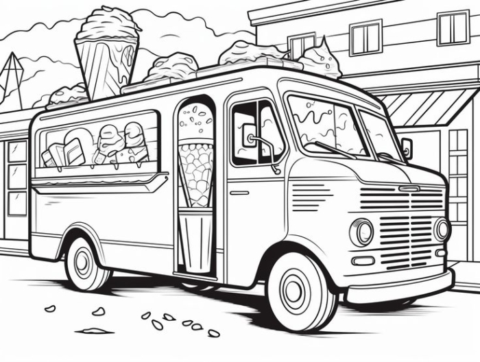 A fun coloring page featuring an ice cream truck with delicious treats and playful details to enjoy.