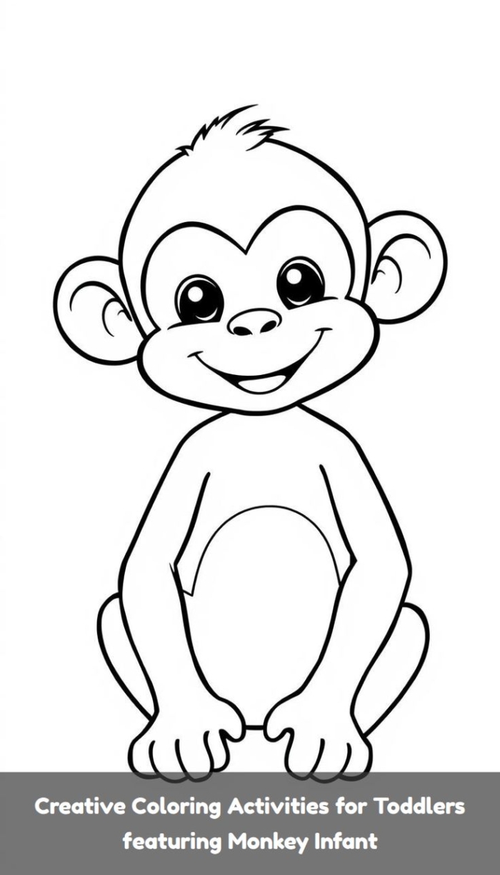A fun coloring page featuring a playful monkey infant engaged in creative coloring activities tailored for toddlers.