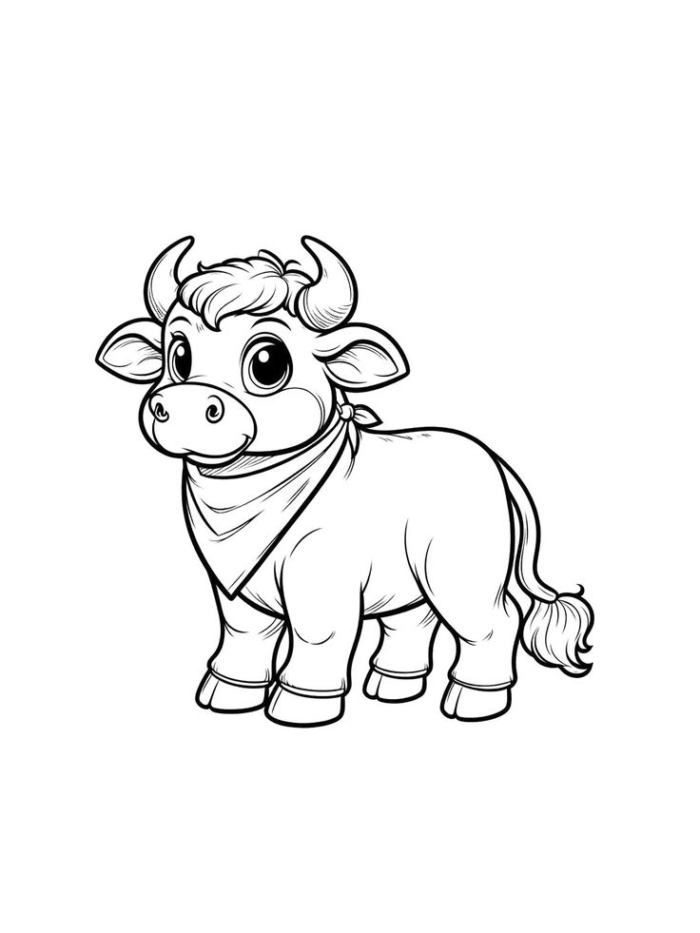 A free, printable coloring page featuring a fun and detailed bull illustration for creative coloring.