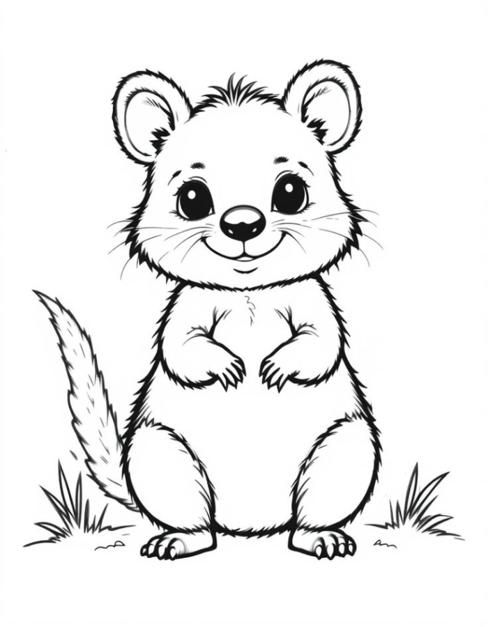 A cute animal sitting peacefully in the grass with its paws resting on its chest, ready to be colored.