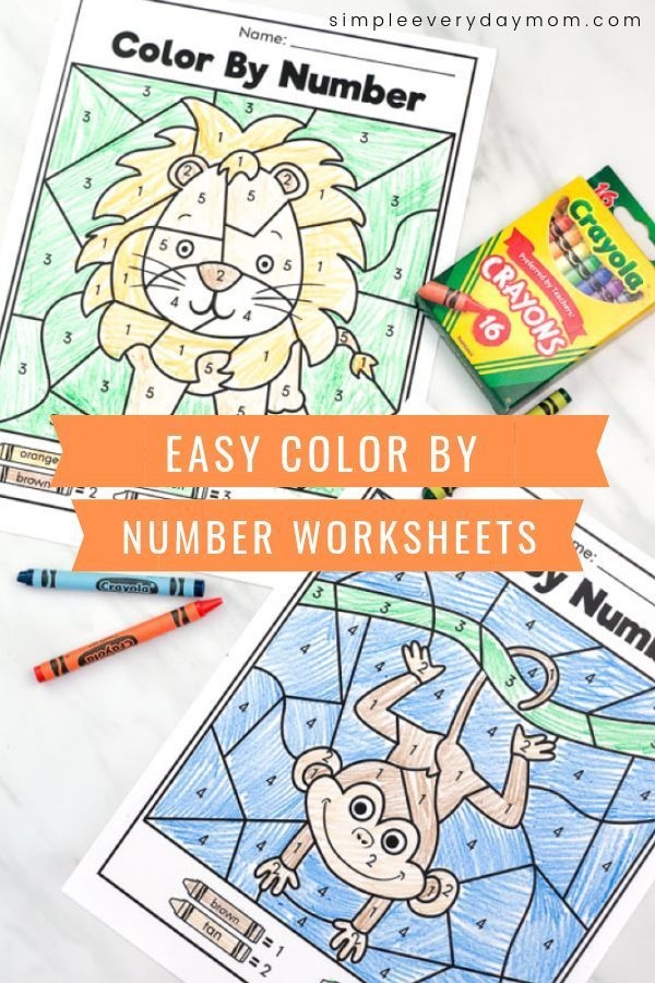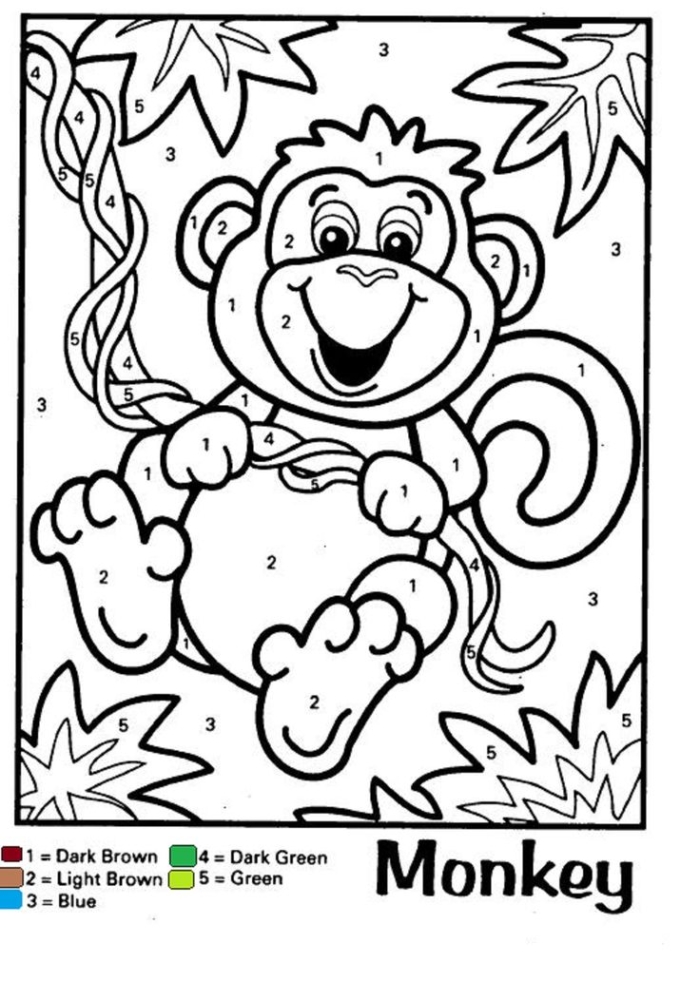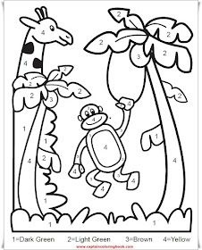A fun jungle animal color by number worksheet perfect for preschoolers to enjoy at home or in the classroom.