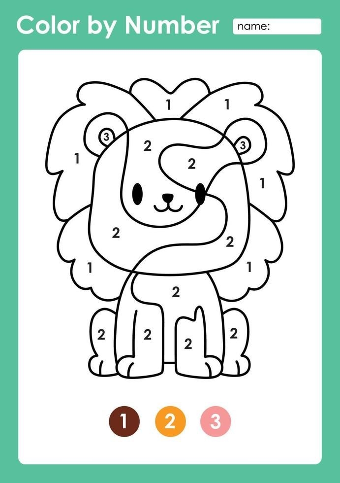 A vibrant lion color-by-number worksheet set against the savannah, capturing the majestic roar of the king of the jungle, perfect for preschoolers to explore their wild side.