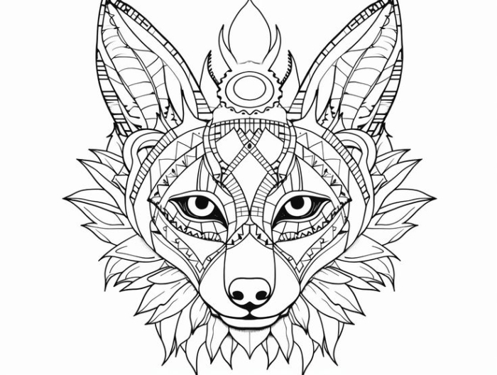 An adult coloring page featuring a creative and whimsical Coyote illustration to inspire artistic expression.