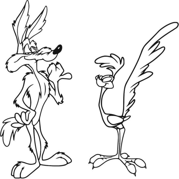 A coloring page featuring the characters from Disney’s animated movie “The Fox and the Hound,” inspired by Looney Jones.