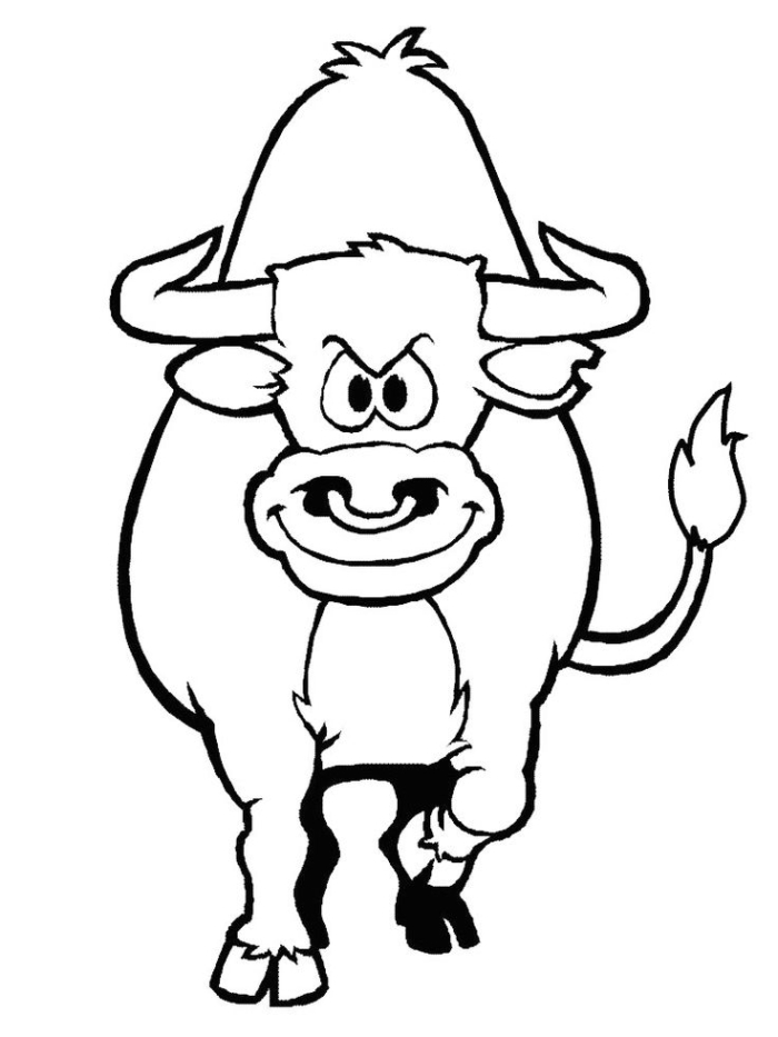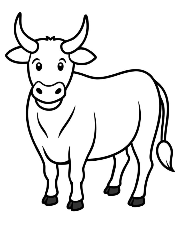 A simple outline of a bull standing majestically against a plain white background, designed for coloring.