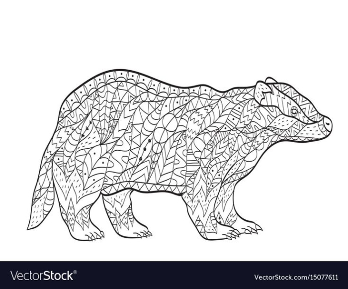This coloring page features a bear composed of various shapes and sizes, with leaves incorporated into its design.