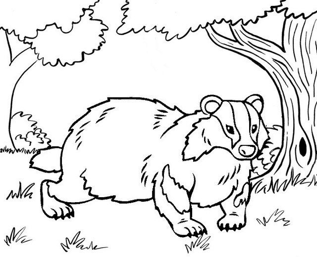 A coloring page featuring a badger in a park setting, highlighting mammals and nature-themed elements for coloring enthusiasts.