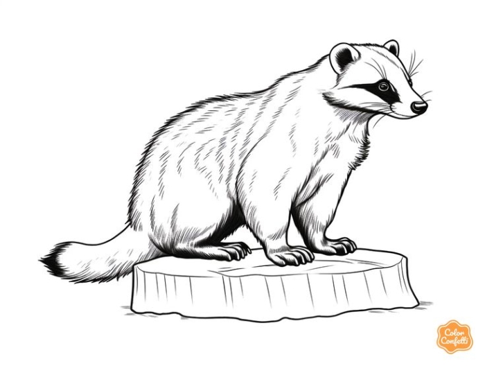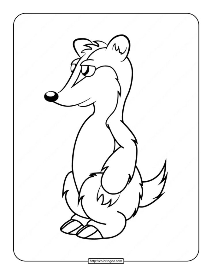 A free and printable badger coloring page featuring a detailed illustration of a curious badger ready for coloring.