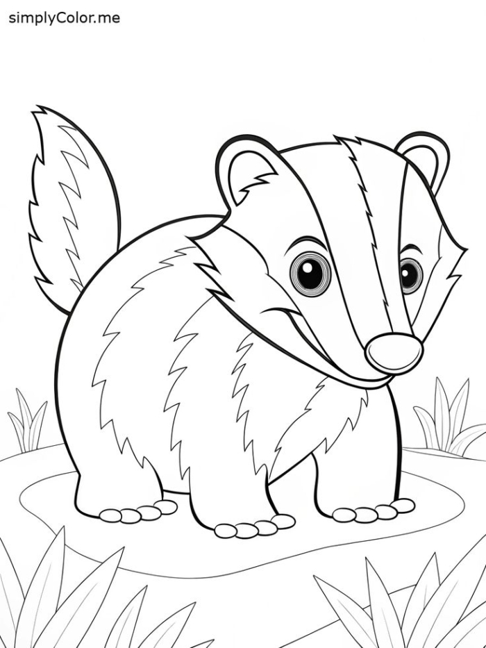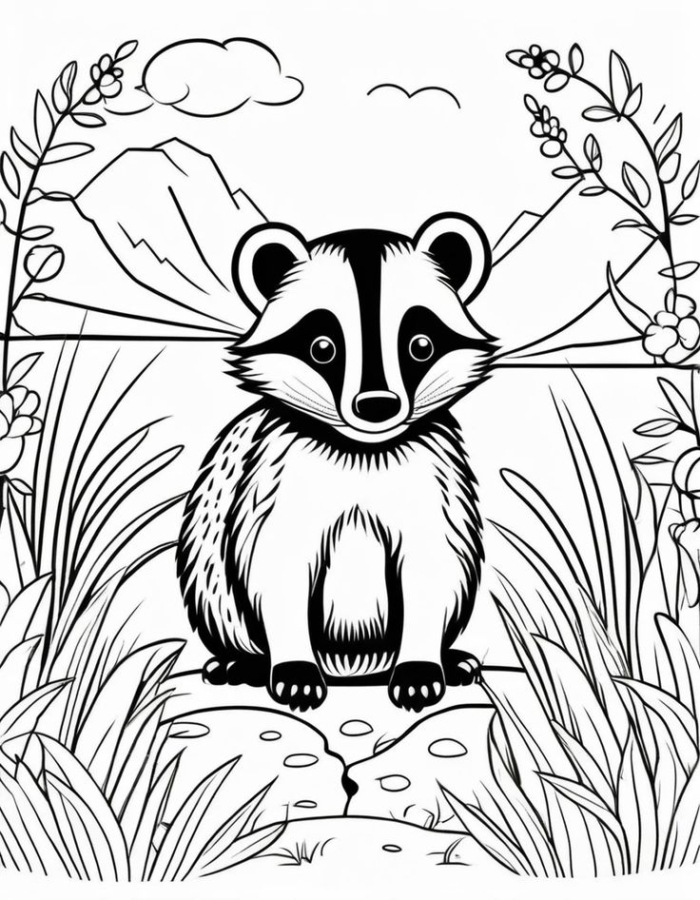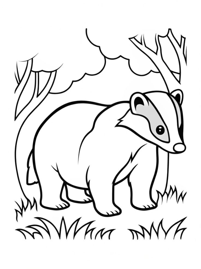 A fun and detailed badger coloring page featuring a friendly badger in a natural setting ready for coloring.