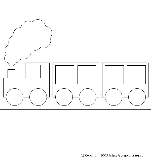 This coloring page features a train with the word “train” written on its side, designed for kids to color.