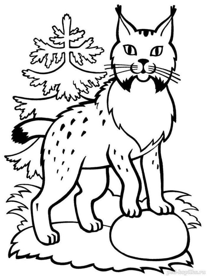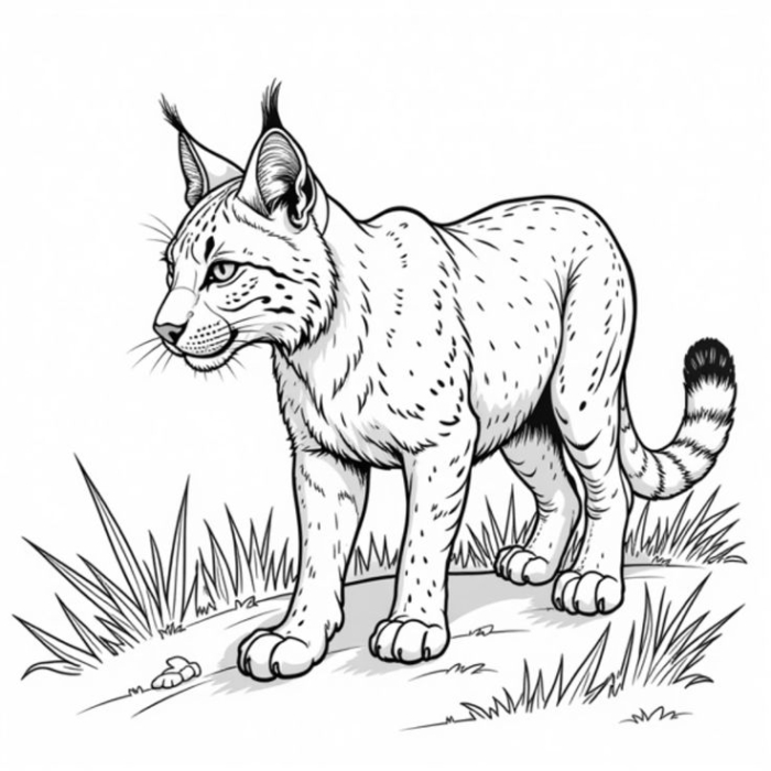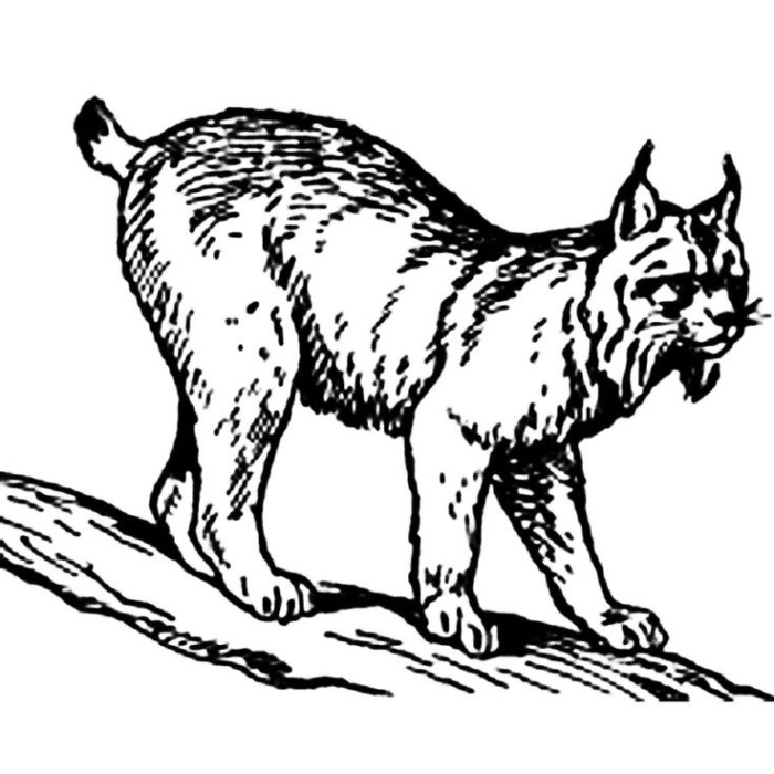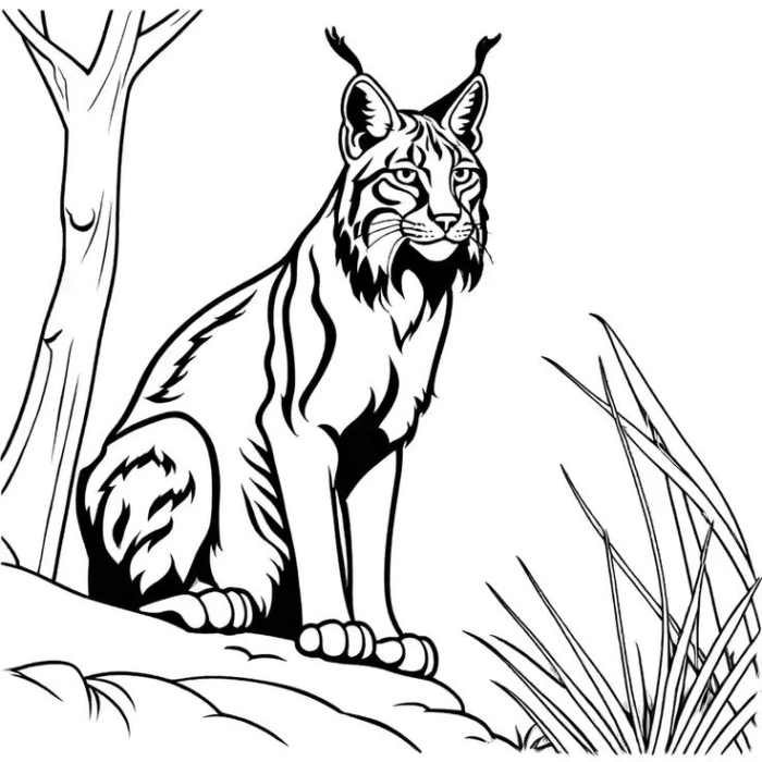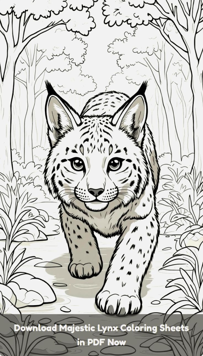This coloring page features a stealthy lynx lurking in the shadows, creating a mysterious scene perfect for coloring and learning about this fascinating animal.