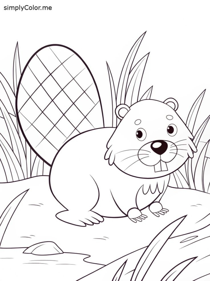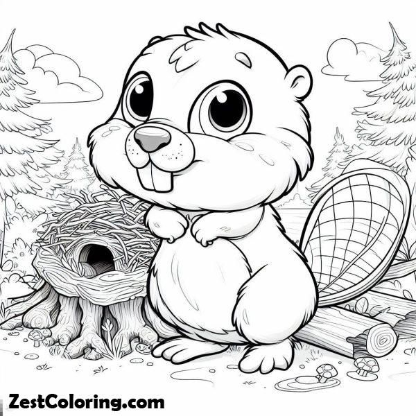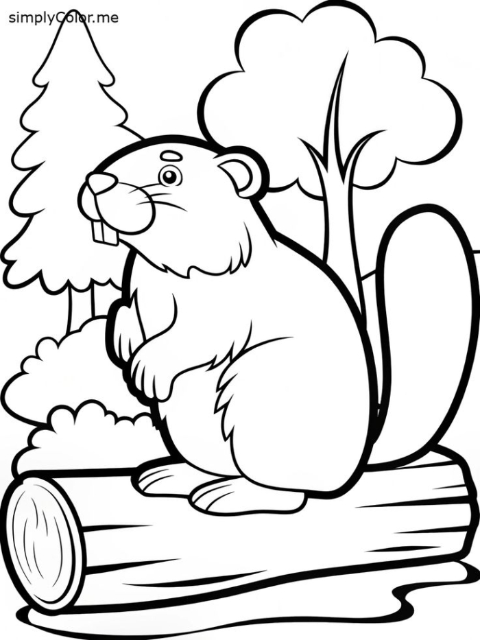 A adorable beaver coloring page featuring a cute animal outline, perfect for children’s creative development, printable for free, suitable for photo editing and fun activity ideas.