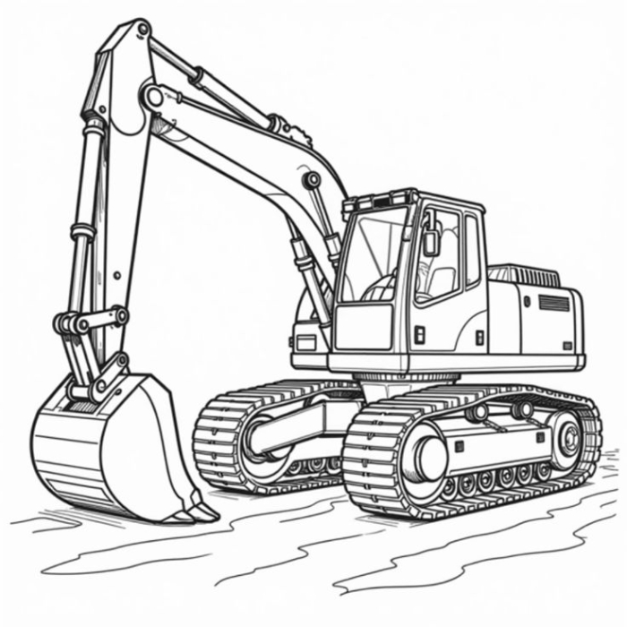 A line drawing of an excavator and dump truck ready to be colored, perfect for kids who love vehicles and construction fun!